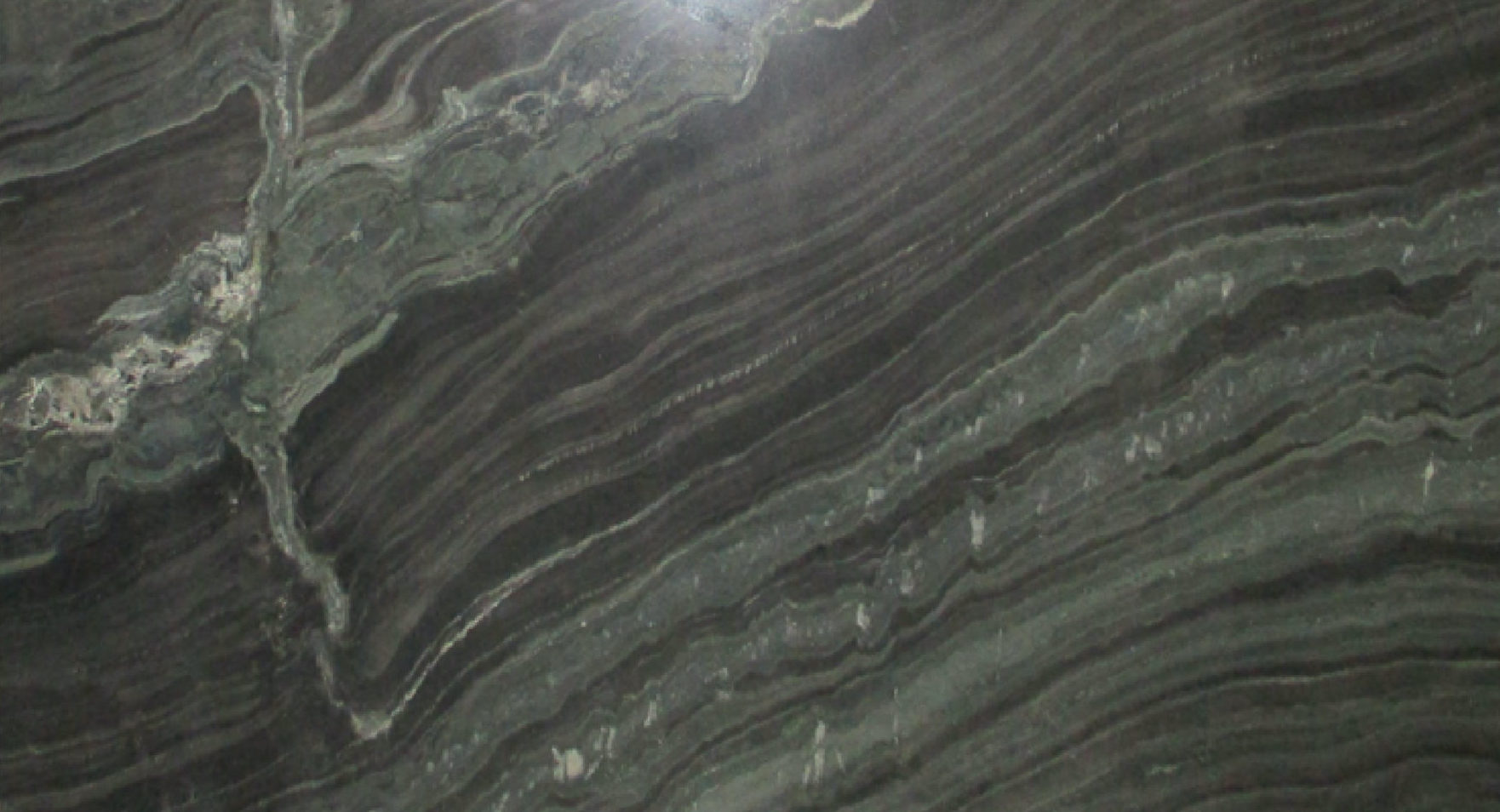 Barranquila Quarzite is from Italy and features a black base with flowing straight veins of dark colors including greens.