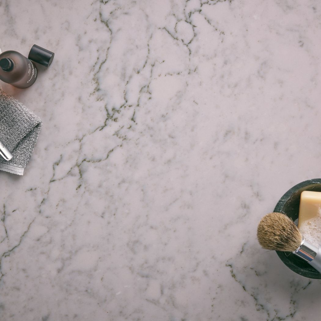 Cambria Bridport Quartz is a light design with a light gray base and darker gray/black veining throughout the design. It embraces the look of natural marble with the great benefits of Cambria quartz kitchen countertops.